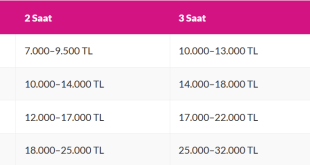Standart Türk: 1 saat: 4.000 TL ile 5.000 TL arası 2 saat: 6.000 TL ile 10.000 TL arası 3 saat: 10.000 TL ile 14.000 TL arası Gece: 20.000 TL ile 30.000 TL arası 24 Saat: 40.000 TL + Rus / Ukraynalı (yabancı):; 1 saat: 5.000 TL ile 7000 TL arası 2 saat: 7.000 TL ile 10.000 TL arası 3 saat: …
